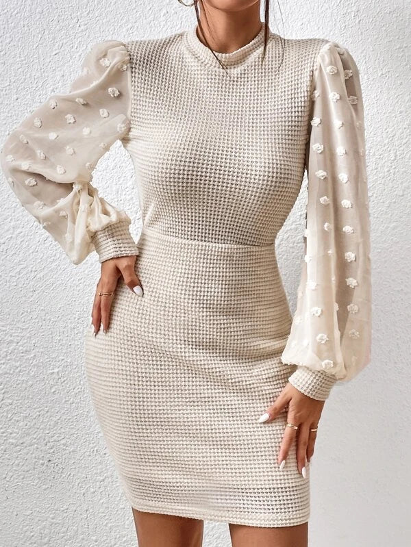 שמלות גוף עם צווארון גבוה ושרוולים מנוקדים שוויצריים
