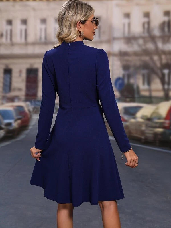 היכנסי לעולם של אלגנטיות עם שמלת צווארון גבוה עם פרטי כפתורים בצבע כחול רויאל מרהיב. שמלה אלגנטית בסגנון A-line זו מעוצבת להדגיש את גופך תוך מתן נוחות וסטייל לכל אירוע. בין אם את משתתפת באירוע רשמי, דייט ערב או מפגש חברתי, שמלה זו היא הבחירה המושלמת שלך להרשמה מתמשכת. המתיחה הקלה בבד הסרוג מבטיחה התאמה מושלמת, ומאפשרת לך לנוע בחן ובביטחון.